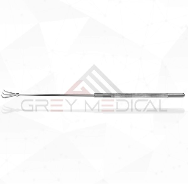 GreyMedical® Introducing Cervical Hooks (26cm) are surgical instruments that are used in gynecological procedures to grasp tissue or remove an intrauterine device in the uterus. It features three sharp hooks and an etched handle for better grip. Also, Cervical Hook is easy to clean and can be reused in clinical settings. Additionally, it is crafted from premium surgical-grade stainless steel, featuring a satin and bright finish that ensures the best possible quality.