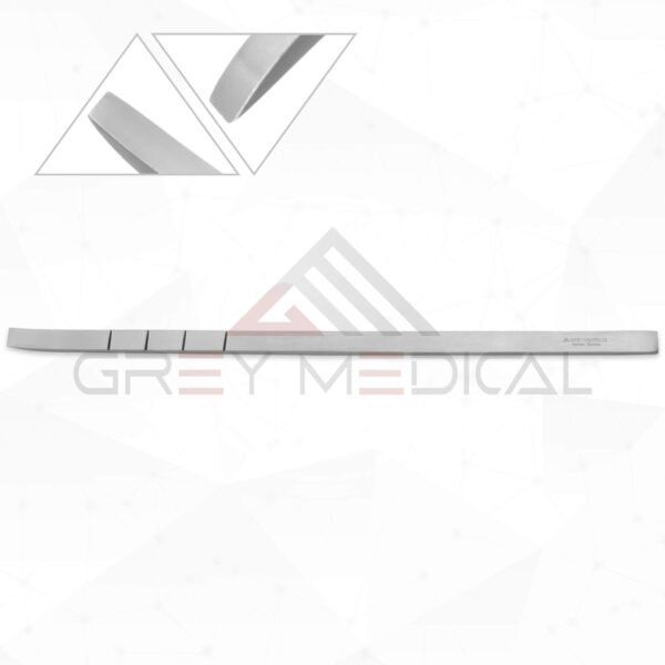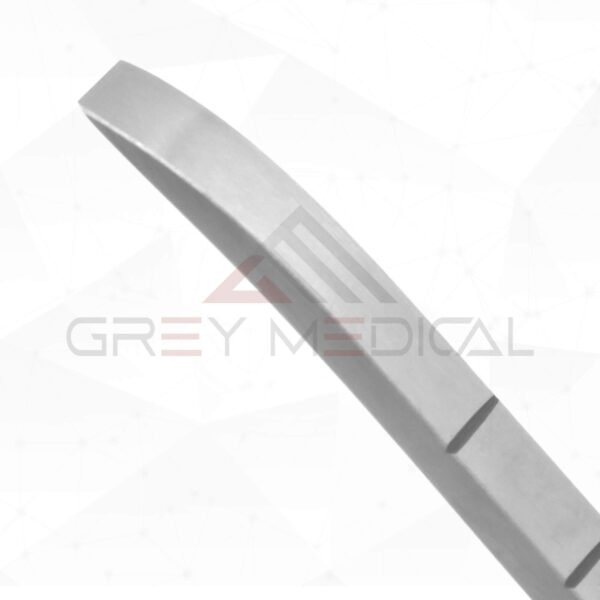 GreyMedical® Introducing the Cakir Nasal Chisels (18cm) are surgical instruments used in plastic surgery procedures. Additionally, it features a slender profile with a sharp, curved blade and depth markings on the shaft. Cottle Chisels are easy to clean and can be reused in clinical settings. Also, it is crafted from premium surgical-grade stainless steel, featuring a fine finish that provides the best possible quality.