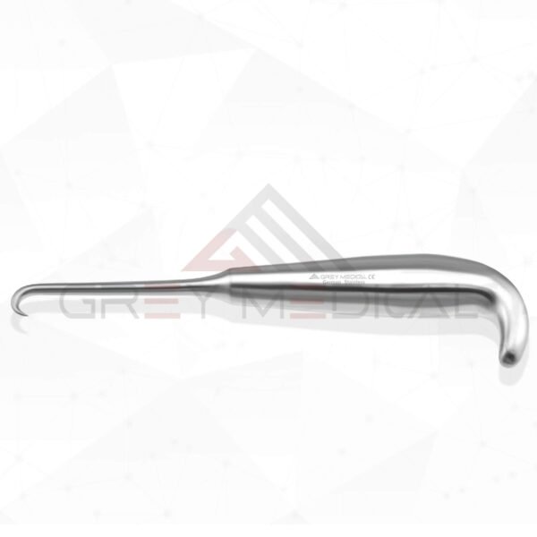 GreyMedical® Introducing Dingman Zygoma Hooks (18cm) are surgical instruments that are used to reduce zygomatic (cheekbone) fractures. It has a hook-shaped, pointed tip that firmly attaches to the bone, giving the fractured arch the traction and fixation it needs to realign itself. Also, Dingman Zygoma Hook is easy to clean and can be reused in clinical settings. Additionally, it is crafted from premium surgical-grade stainless steel, featuring a satin and bright finish that ensures the best possible quality.