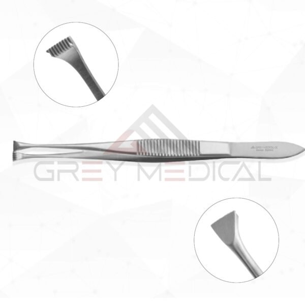 GreyMedical® Introducing the Graefe Fixation Forceps (10.5cm) are surgical instruments used in plastic surgery procedures. Additionally, it has an ergonomic handle with a locking mechanism and multiple delicate teeth. Graefe Fixation Forceps are easy to clean and can be reused in clinical settings. Also, it is crafted from premium surgical-grade stainless steel, featuring a fine finish that provides the best possible quality.