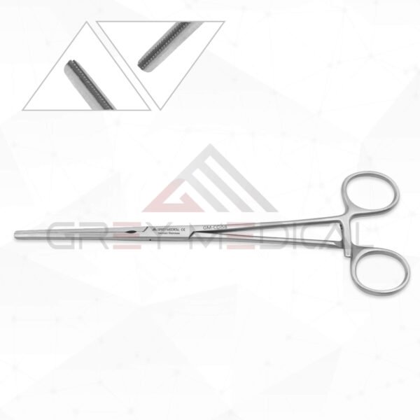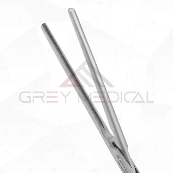 Grey-Medical Vascular Clamp – Straight Jaws, Straight Shanks, 8-1/2″ (21.5 cm) is designed for clamping vessels in cardiovascular surgery, primarily the carotid artery. Its straight jaw allows it to easily clamp the vessel with the utmost control, while the DeBakey serrations allow for effortless and atraumatic clamping.