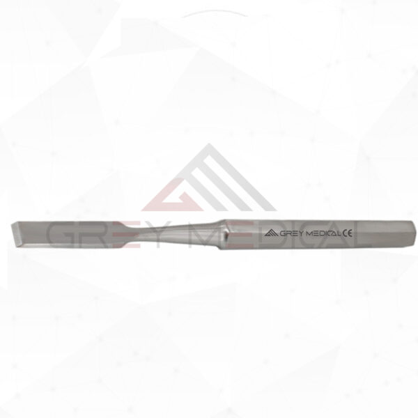 GreyMedical® Introducing Hibbs Osteotome (28.0 cm), which is used in neuro surgery, is a versatile surgical instrument designed for precise bone manipulation. Measuring 9 1/4” overall, it features a straight blade that is 19.0 mm wide and a hexagonal handle for improved control.  Hibbs Osteotome is made for use in neurosurgical procedures that require scraping or chiseling through bone. This osteotome features a thick handle for ease in gripping and maneuverability. The handle narrows into a slim neck which widens out again into a chisel type blade. Additionally the blade features a slight curvature increasing its ability to be used to strip or scrape away layers of bone and tissue.  Also, it is crafted from premium surgical-grade stainless steel, featuring a satin finish that ensures the best possible quality.
