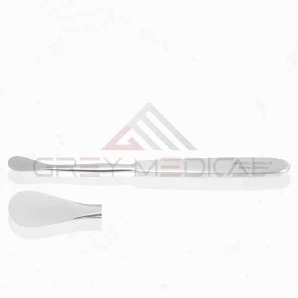 GreyMedicalĀ® Introduces the Hoen Elevator, utilized in a number of neurosurgical and orthopedic procedures. It can help raise and move the softer tissues so that the surgical area is widely exposed. The sharp blade of the instrument is oval and slightly curved, with tip diameters ranging from 9 to 20 mm. It has a straight hollow grip that makes dissection simple. It is manufactured according to International Standards of Medical Hygiene and constructed with German Stainless Steel for long-lasting use.