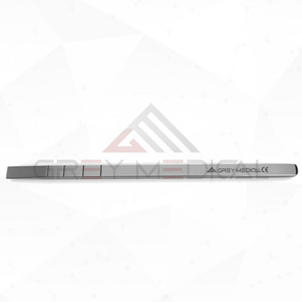GreyMedical® Introducing Lambotte Osteotome (18.4 cm), which is used in neuro surgery, ambotte Osteotome is designed for use in neurosurgical procedures that require manipulation of bone. This instrument is designed to be used manually to cut through bone. It offers many advantages over drills or mechanical tools such as increased sensitivity to adjust the level of force. Additionally this osteotome has the added benefit of featuring calibration lines. This osteotome is available in twelve widths in a straight profile as well as two widths in a curve profile.  Osteotome is easy to clean and can be reused in clinical settings. Also, it is crafted from premium surgical-grade stainless steel, featuring a satin finish that ensures the best possible quality.
