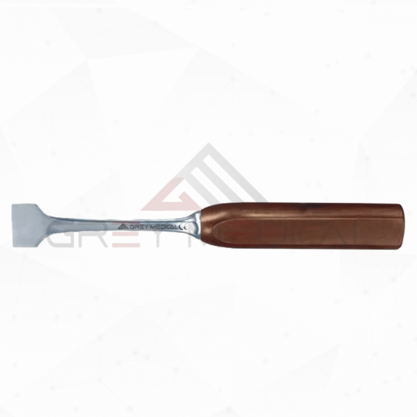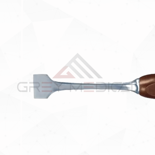 GreyMedical® Introducing Lexer Gougew/ sterilizable (up to 143 degrees c) plastic handle, which is used in neuro surgery iis a versatile surgical instrument measuring 8 5/8” overall. Straight with a 10.0 mm wide blade, it features a phenolic handle for secure grip. The straight design of the Lexer chisel provides precision in surgical chiseling tasks, ensuring accurate cutting and shaping. Its 10.0 mm wide blade facilitates efficient material removal, while the phenolic handle offers an enhanced grip, reducing hand fatigue during prolonged procedures. Also, it is crafted from premium surgical-grade stainless steel, featuring a satin finish that ensures the best possible quality.