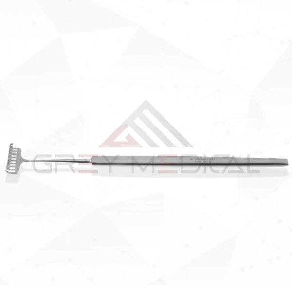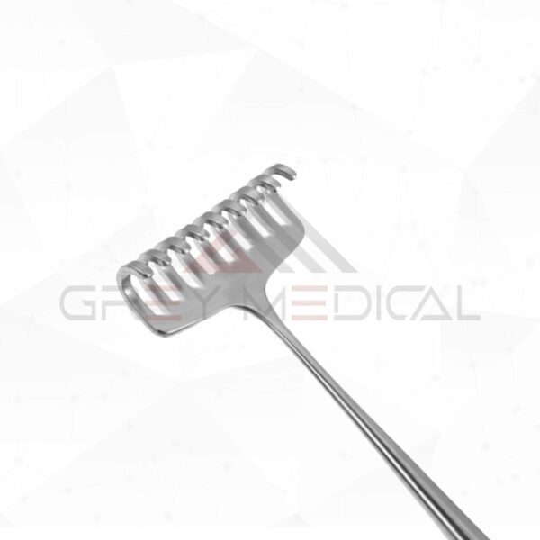 GreyMedical® Introducing Mueller Rake Retractor (25.5cm) are surgical instruments that are used in a variety of operations, such as plastic surgery and thyroidectomy, to hold back bone, muscle, organs, or tissue. This allows for clear access to the surgical site and exposes the surgical site while protecting the organs. Also, Mueller Rake Retractor is easy to clean and can be reused in clinical settings. Additionally, it is crafted from premium surgical-grade stainless steel, featuring a satin and bright finish that ensures the best possible quality.