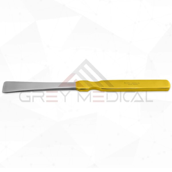 GreyMedical® Introducing the Nasal Osteotome (18cm) is a surgical instrument used in plastic surgery procedures. Additionally, it features straight grinds with rounded double edges. The Nasal Osteotome is easy to clean and can be reused in clinical settings. Additionally, it is crafted from premium surgical-grade stainless steel, boasting a fine finish that ensures the highest possible quality.