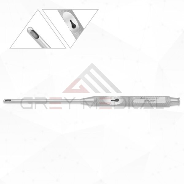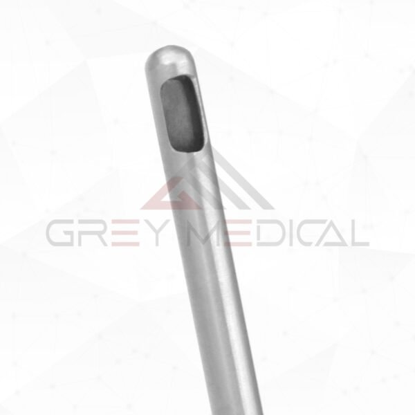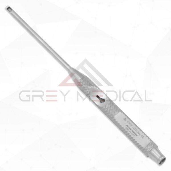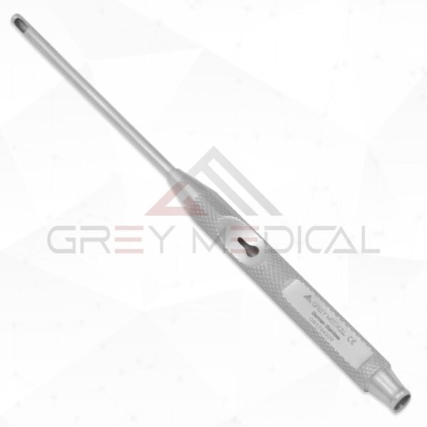GreyMedical® The Panetti Suction Oval irrigation overall length 5 1/8″ ( 13.0cm), straight with a suction tube and featuring suction control on the hand piece, also offer luer lock in the end. Made with German stainless steel.