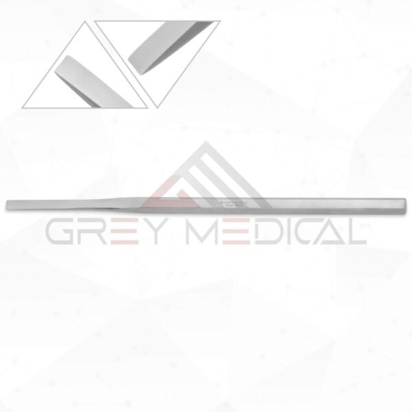 GreyMedical® Introducing the Sheehan Osteotome (16cm) is a surgical instrument used in plastic surgery and rhinoplasty procedures. Furthermore, it features a flat profile and is provided in 4 different widths. The Sheehan Osteotome is easy to clean and can be reused in clinical settings. Additionally, it is crafted from premium surgical-grade stainless steel, boasting a fine finish that ensures the highest possible quality.