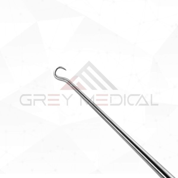 GreyMedical® Introducing Tyrell Hook (12.5cm) are surgical instruments that are used to guide the placement of other surgical tools, electrodes, or probes, to help identify the borders of a tumor or abnormal tissue, or to carefully separate brain tissue or other structures. Also, Tyrell Hook is easy to clean and can be reused in clinical settings. Additionally, it is crafted from premium surgical-grade stainless steel, featuring a satin and bright finish that ensures the best possible quality.